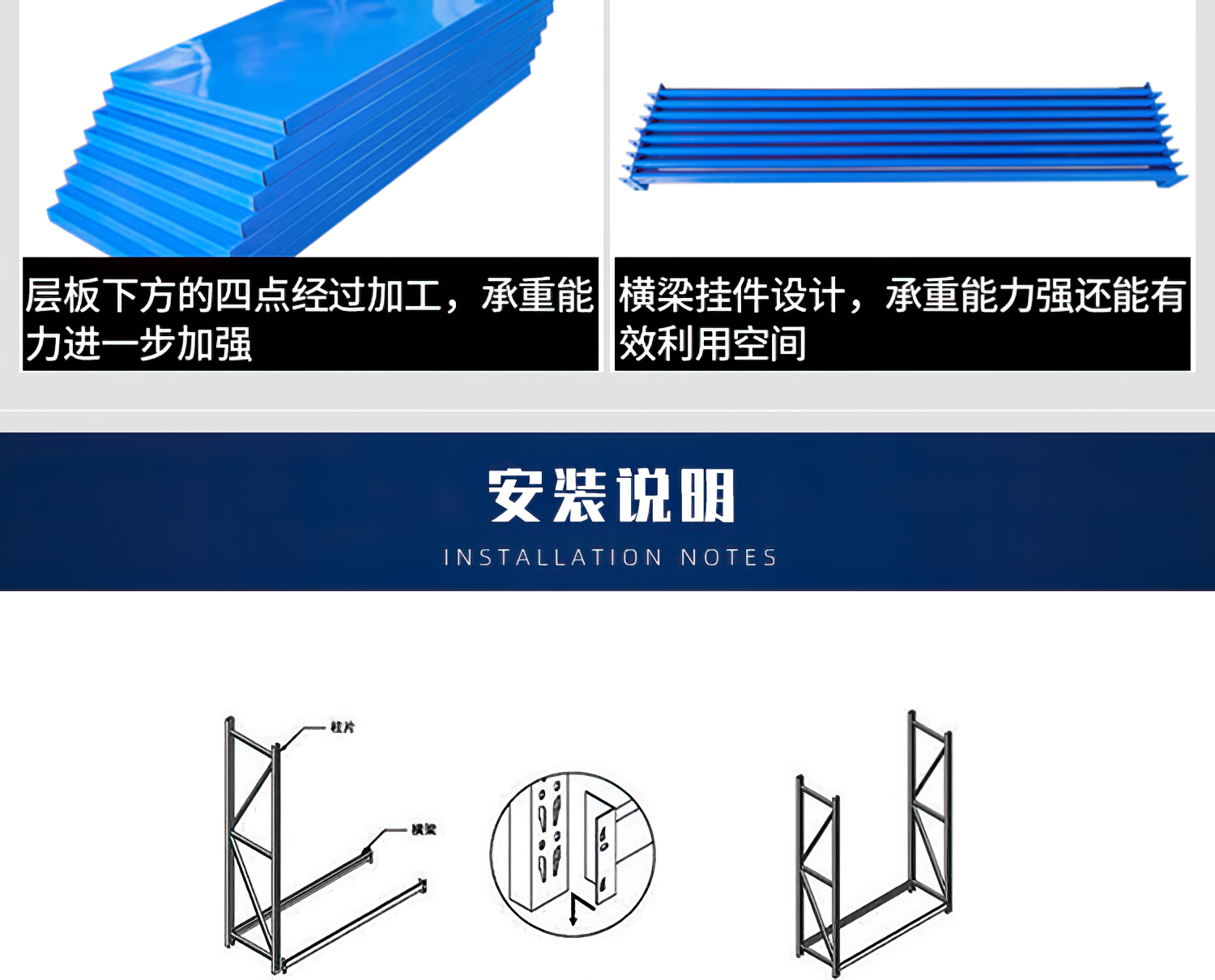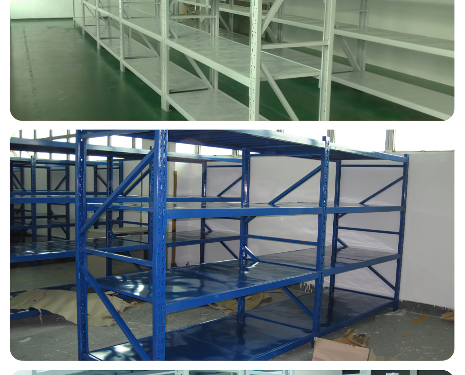中型倉儲貨架采用立柱片與橫梁掛接結(jié)構(gòu),拆裝方便,層板50mm可調(diào),均載下層載可達200-600kg(貨架載荷絕大多數(shù)是以層為單位的承載量計算)。貨架跨度可達2400mm,層板可選用鋼板、木層板(夾板)。擱板式中型貨架是按貨架的承載量來區(qū)分與命名的,按照這一劃分原則擱板式中型貨架在所有倉儲貨架中的承載量是介于擱板式輕型貨架和擱板式重型貨架之間。